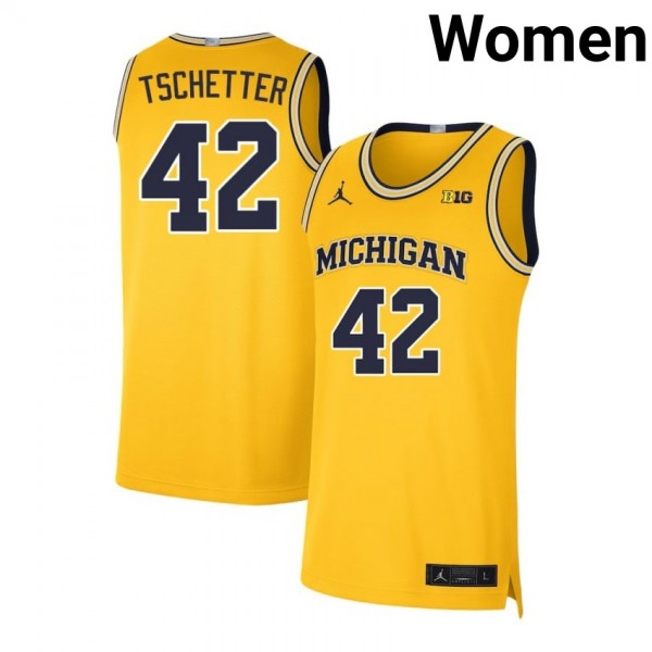 • Womens Will Tschetter Maize Michigan Wolverines #42 College Basketball 2025 Jersey
